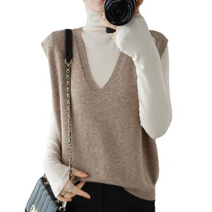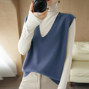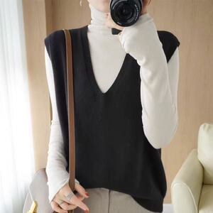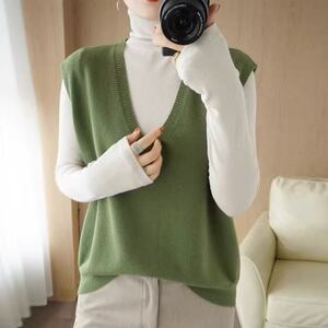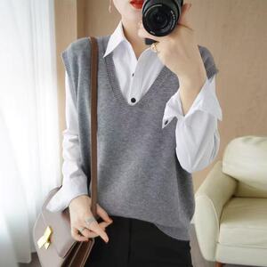 2025春秋装新款宽松大V领针织背心韩版纯色减龄休闲百搭女式马甲