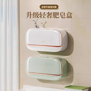 壁掛け式ソープディッシュ、穴あけ不要、家庭用高級水切り付き蓋付きソープディッシュ、軽奢なバスルーム用石鹸置き