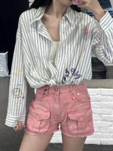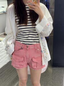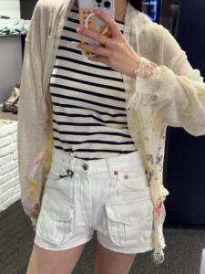 R*13 マルチポケットデニムショートパンツ 25 新深セン南油ハイバージョンダメージ加工カジュアルパンツ