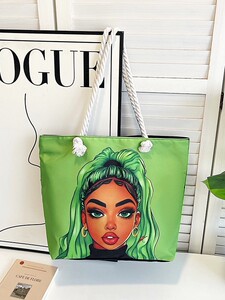 2025 新ビーチバッグ大容量トートバッグ女性のショルダーバッグ麻ロープ黒美容バッグキャンバスバッグ