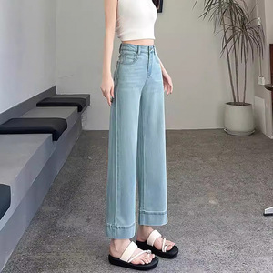 莱赛尔凉感直筒裤裤女2025夏季薄高腰小个子窄版软牛仔九分烟管裤
