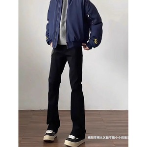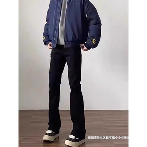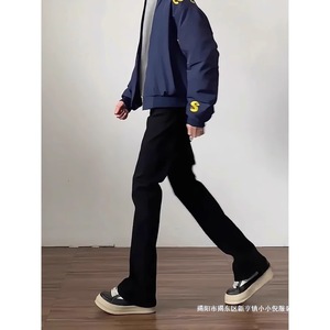 Cleanfit ブラック ストレート ジーンズ メンズ シンプルで多用途、スリムで脚長、アメリカン バイブ ハイストリート シミターパンツ