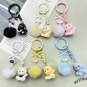 毛玉ブラインドバッグ挨拶子猫毛玉ペンダントビーズ甘いガーリーハート携帯電話チェーン猫漫画ペンダント