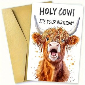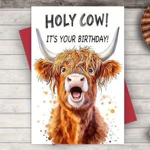 家族、友人、同僚、牛愛好家へのギフトに最適な面白いハイランド牛の誕生日グリーティングカード