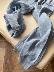 水之林 蓝色条纹仿亚麻阔腿裤女2025新款通勤百搭休闲裤子女潮