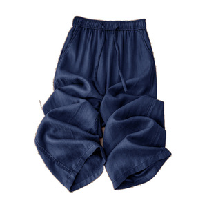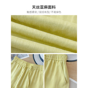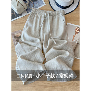 テンセルリネンイエローコットンとリネンのワイドレッグパンツ女性の夏薄い2025新しいハイウエストドレープ9点ストレートパンツ