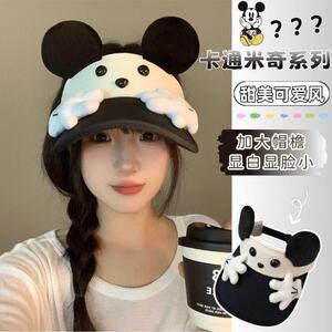 ミッキーリトルハンドリボン日焼け止め空の帽子かわいい女性の夏の漫画顔小さな屋外サンシェードアヒルの舌帽子