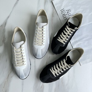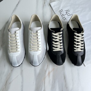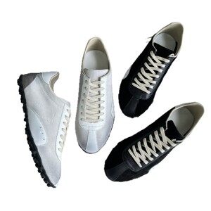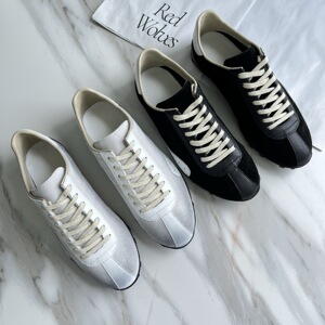 MM*6 ノーラベルレトロオールドドイツトレーニングシューズラウンドトゥフルレザーカラーマッチング多用途ロートップレースアップフラットカジュアルシューズ女性用