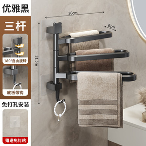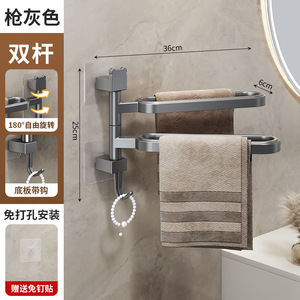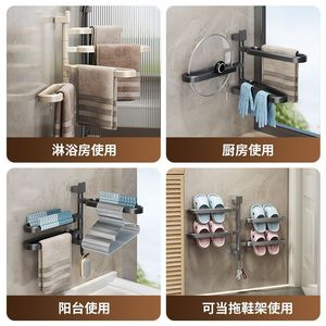 浴室回転タオルラック壁掛けパンチフリースリッパラック吊りロッド浴室収納ラックマルチロッドハンガーアーティファクト