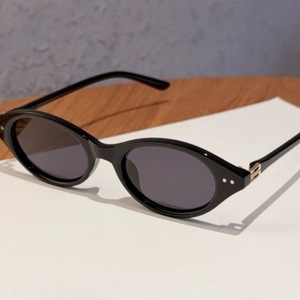 ネットセレブと同じスタイルの楕円形の小さなフレームのオタクサングラス、女性用、ファッショナブルなストリートスタイルの凹面形状、男性用の多用途日焼け止めサングラス、トレンディです。