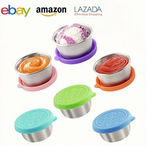 蓋付きの新しいクロスボーダーステンレススチールソースカップ、漏れ防止サラダソースカップ、ピクニックポータブルディップカップ、シリコン蓋