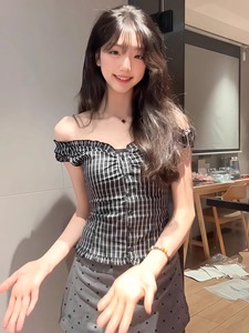 韓国純粋な欲望黒と白のチェック柄ワンショルダーツーウェアオフショルダーシャツベスト女性の夏多用途甘いホットガールスリムトップ