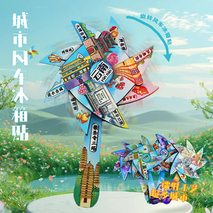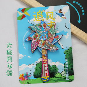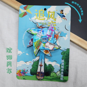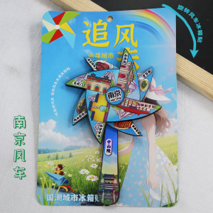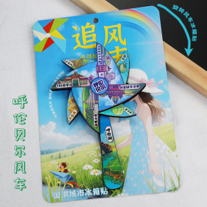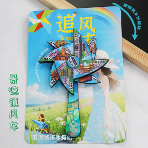 全国トレンド都市回転風車シリーズ冷蔵庫マグネット木製回転風車文化的で創造的な旅行のお土産オリジナルデザイン