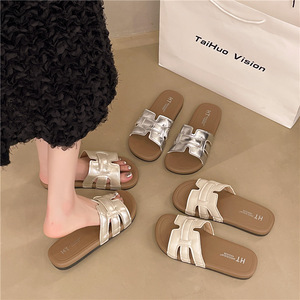 女性が外で履くためのフレンチスリッパ 2025 新しい夏の海辺のビーチ美しいフラットソールの外出用フラットサンダル