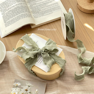 新款双层网纱弹力褶皱丝带礼盒绑带礼品绳花艺缎带肌理感皱边带