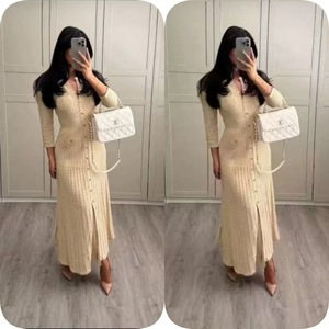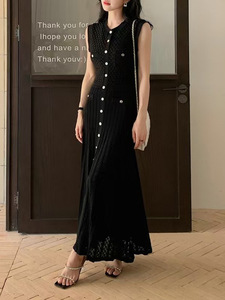 クロスボーダー高品質中空ノースリーブロングスカート夏のラウンドネックベストスカートスリムウエスト痩身ニットドレス