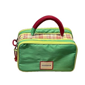 コントラストカラーのダブルジッパーハンドバッグ