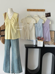 韓国風甘い年齢軽減リラックストップ夏通勤シンプル痩身万能ノースリーブベスト0718-1