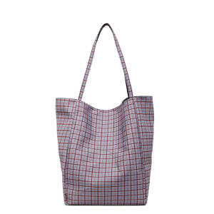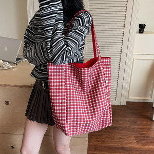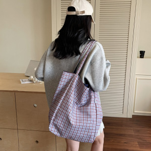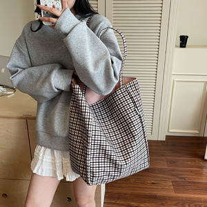 韓国レトロチェック柄キャンバスバッグレディース新作大容量レイジースタイルショルダートートバッグニッチ通勤クロスボディバッグ