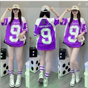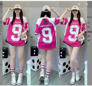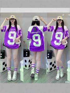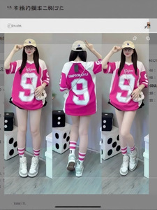 2025 アメリカンハイストリートカジュアルスポーツ野球襟コントラストカラー半袖長袖 Tシャツ女性の夏ルーズプリント半袖