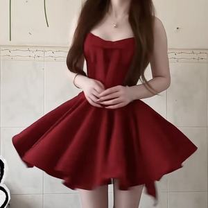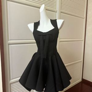 フレンチスタイルのウエストを細く見せるプリンセス風ウエストを細く見せるショートスカート、小柄な女性向けの高級ふわふわドレス、女性用サマードレス
