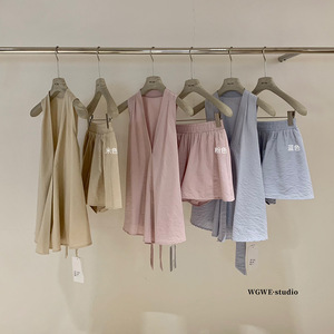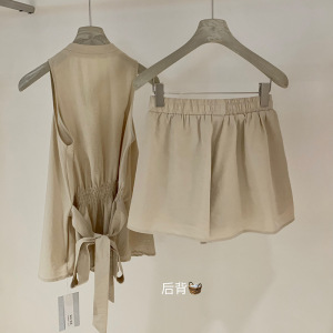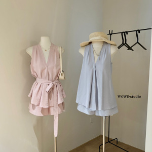 WGWE6200 優しいVネックノースリーブキャミソールハイウエストAラインショートスカート2点セット夏新作スーツ