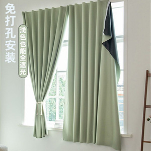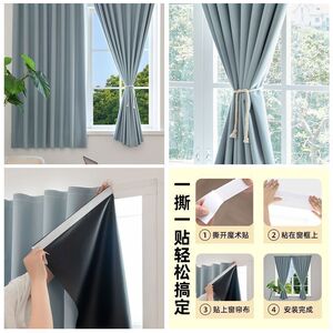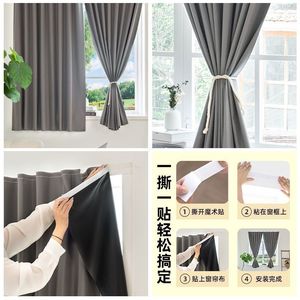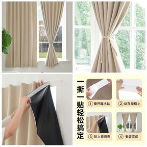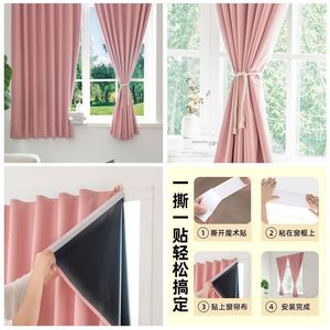 ベルクロカーテン、シンプルな完全遮光、パンチングなしの取り付け、サンシェード、窓の遮蔽、寝室の日焼け止め、粘着式の短い窓