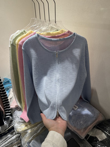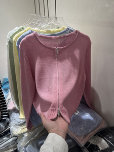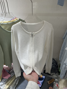 デザインダブルジッパー白アイスシルク日焼け止めニットカーディガン女性の薄い夏ショート空調シャツアウタートップ