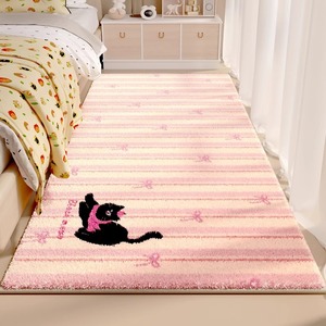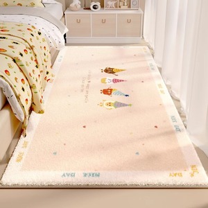 卧室地毯ins风儿童房间床边毯冬季可爱毛绒奶油地垫女孩床前脚垫