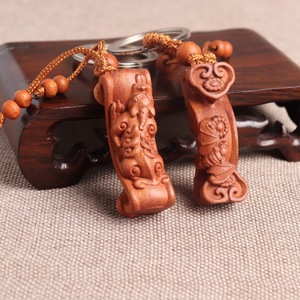 肥城桃木汽车钥匙扣精雕立体剑貔貅福袋四季平安扣算盘等钥匙扣