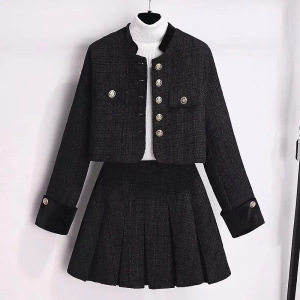 大码新年战袍红色小香风套装外套小个子春季2025新款百褶裙两件套
