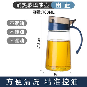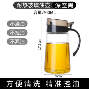 キッチン用ガラスオイルポット、油がこびりつきにくい、大容量の油、油のこぼれ防止、醤油、酢、油タンク、大型オイルボトル