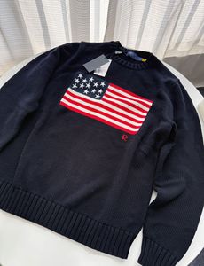 RL/スキャン可能 2025 秋冬新作ピュアコットンヘビーウェイト刺繍アメリカ国旗ラウンドネックニットセーター男性と女性用