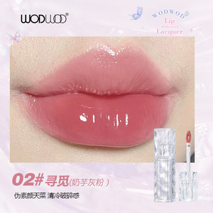 WODWOD ミラーライトウォーター トランスルーセントカラーロックリップグレーズ クリアウォーターライトミラー 速乾性膜形成膜でカップに付着しにくい グレーピンクの口紅