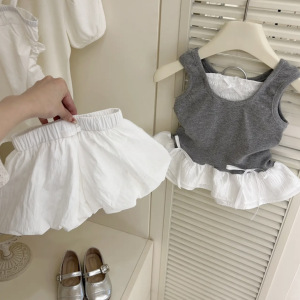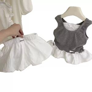 韓国女の子サマースーツ 2025 新しいかわいい女の赤ちゃんプリンセススタイル花のつぼみパンツベストスカート花のつぼみショーツ