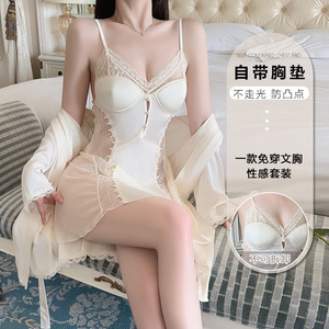 Guiruo 大きいサイズのパジャマ甘いレース装飾情熱的なホットプラス胸パッドサテンサスペンダースカートローブセット 5302