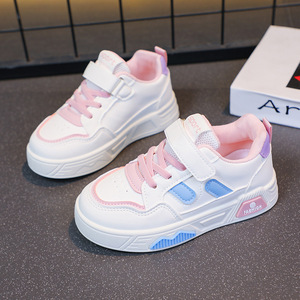 2025 秋の新子供のレザーパネルシューズ男の子の快適なスポーツシューズ女の子のカラーマッチングレザーカジュアルシューズトレンディな