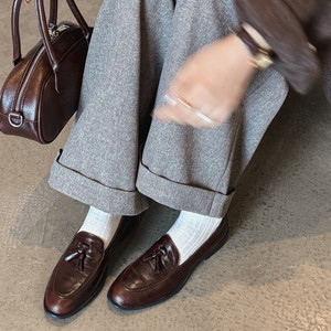 タッセルローファー レディース 小さめ革靴 秋冬新作 本革 ラウンドトゥ ローヒール 英国風 レトロ 深口 シングルシューズ 婦人靴