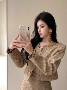 法式小香风套装粗花呢亮片长袖短外套女秋冬穿搭包臀半身裙两件套