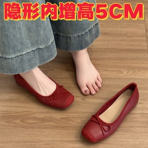 在庫あり シープスキンバージョン~フレンチスタイル 小柄な女性向けインナー身長アップバレエシューズ レトロリボンスリッポンシューズ
