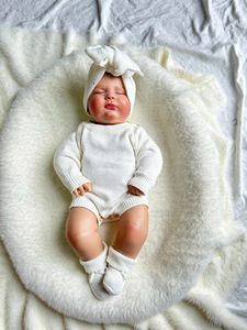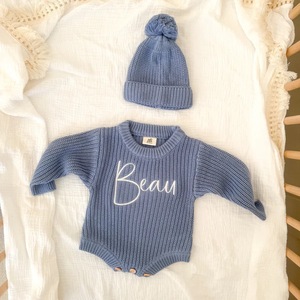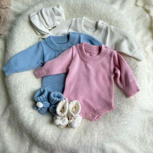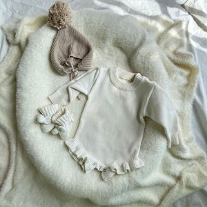 INS 新生児ベビー服、ニット綿糸、男女兼用三角ロンパース、幼児用オープンショルダージャンプスーツ