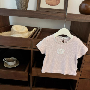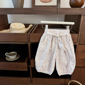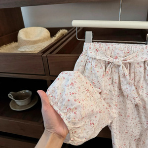 女の子用サマーセット 韓国ベビー服 2025年新作 森ガール風 可愛いTシャツ半袖 子供用プリント七分丈パンツ 防蚊
