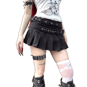 y2k ホットガール黒プリーツスカート女性の夏 2025 新しいパンクスカートローウエスト重工業 a ライン jk スカート