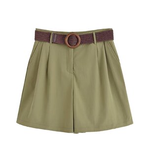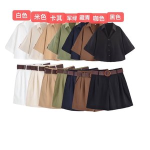 外贸单1夏季新款欧美风女装时尚休闲短袖衬衫配腰带短裤8372226