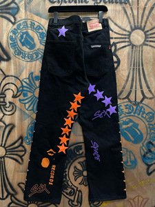 跨境美式顶级版CH克罗remake十字架拼皮梵文直筒工装牛仔裤男女款