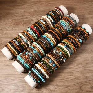 国境を越えた新製品ボヘミアンスタイルウッドビーズビーズメンズデイリー多用途ブレスレットセット25点セットランダムに発送