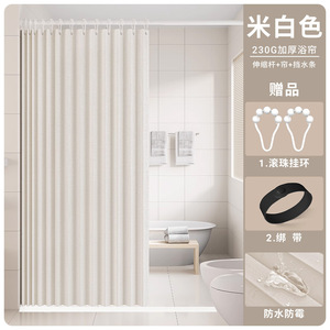 230g 厚手生地: オフホワイト [カーテン + 伸縮ロッド + 保水ストリップ]