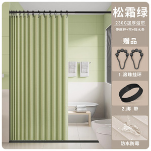 230g 厚手の生地: パイングリーン [カーテン + 伸縮ロッド + 保水ストリップ]