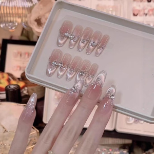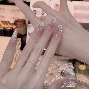 【天秤座】純ハンドメイドウェアラブルネイル、ホワイトブラッシュ、ヌードグラデーションキャットアイ、高級純ハンドメイドネイルアートステッカー