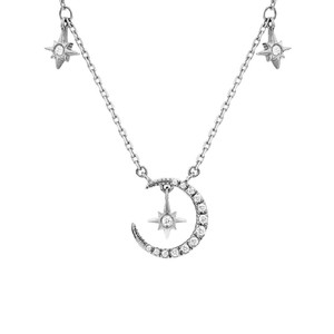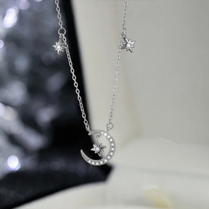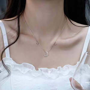 銀貝銀河、星と月が輝く、フルダイヤモンドスターリングシルバーネックレス、女性用、軽い高級感、ハイエンド、ファッショナブルで多用途なペンダント鎖骨チェーン